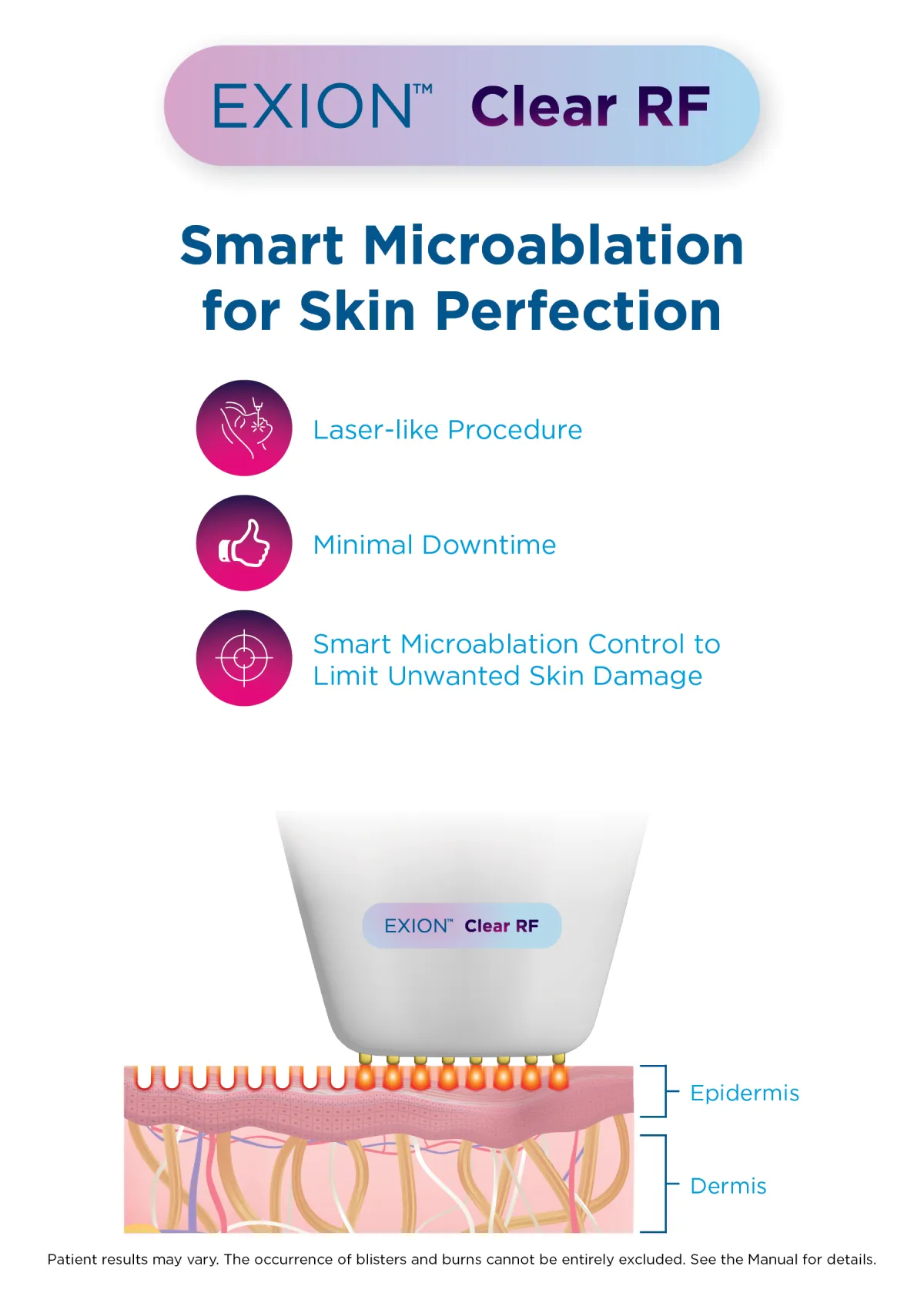 Most clients describe Exion as warm and mildly tingly — not painful. Thanks to AI-guided energy control and the single-pass technique, discomfort is minimal compared to traditional RF microneedling.